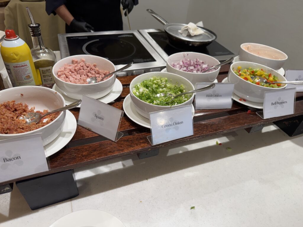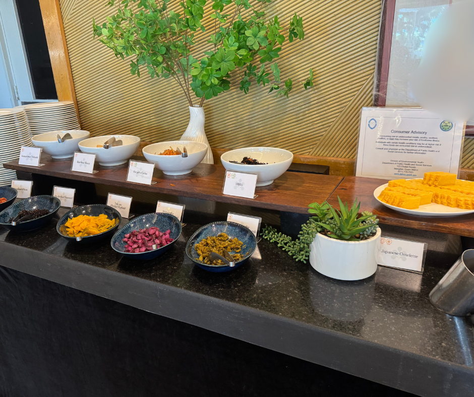 朝食では、チャモロ料理というグアムの伝統料理も楽しめました。
