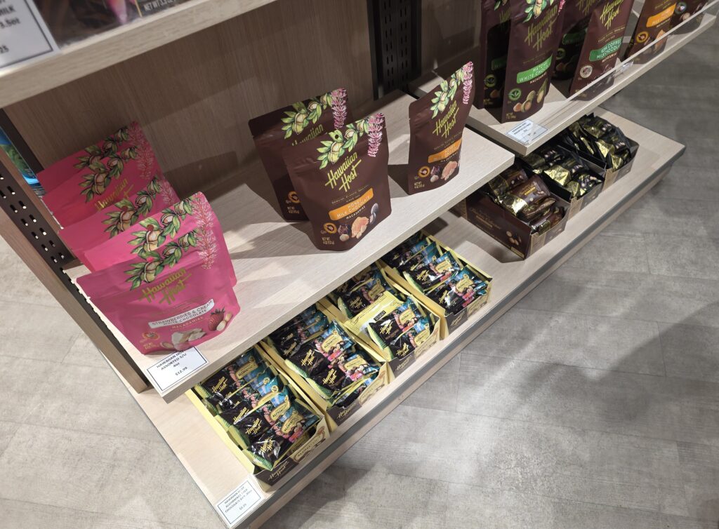 入口すぐにお土産コーナーがあり、マカダミアチョコやお菓子、お酒、