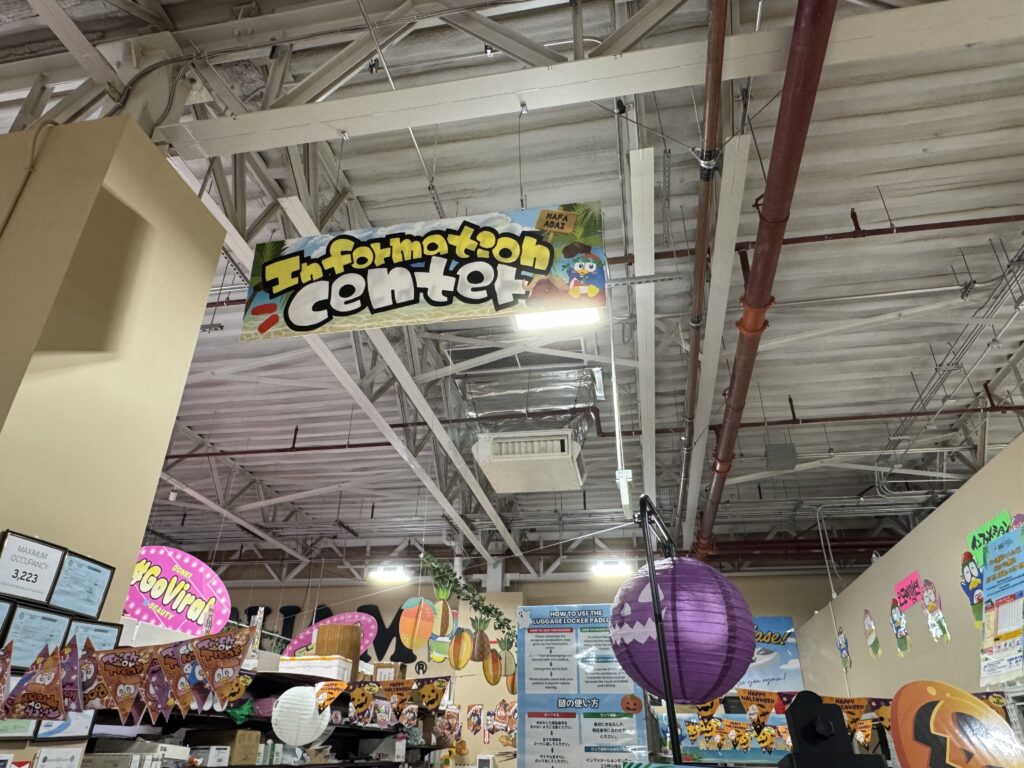インフォメーション近くにはキャリーケース置き場がありました。(原則、ドンキ店内にスーツケースの持ち込みは禁止となっているので、スーツケースがある場合は入店時にこちらに荷物を置くことになります。)