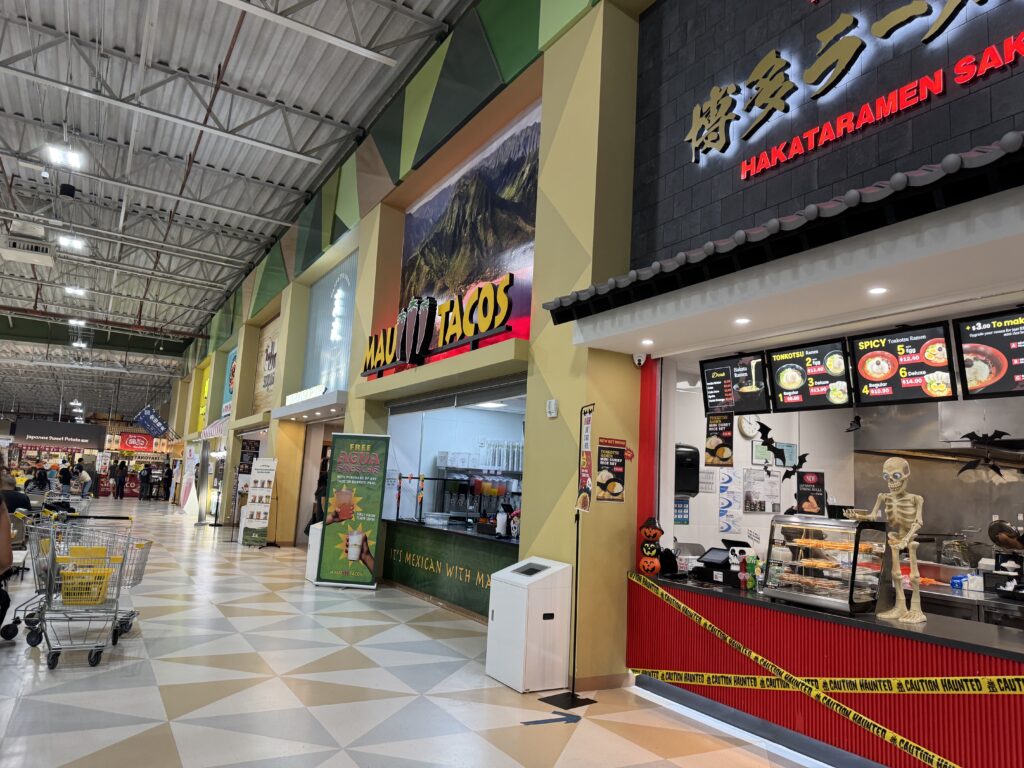 フードコートにはラーメンやタコス、銀だこなど、さまざまなお店が並んでいます。