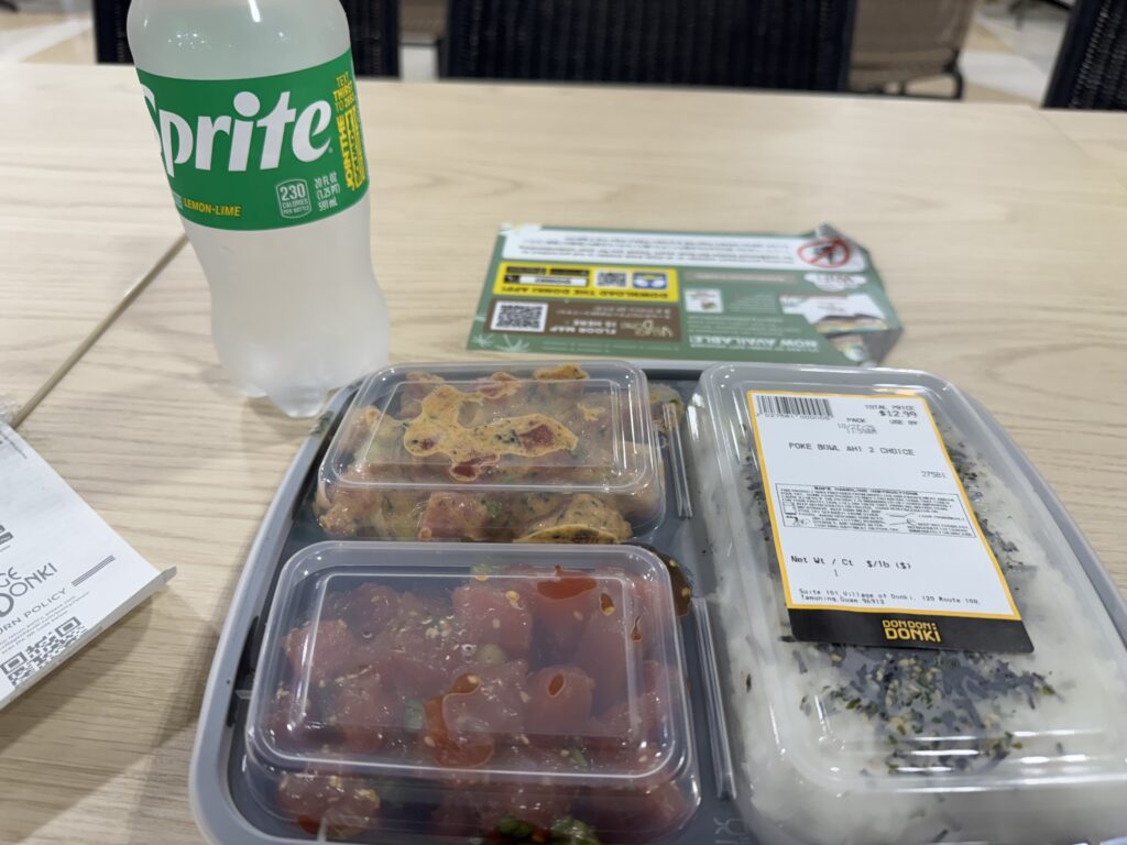 先にポキ丼と飲み物だけ会計し、その後ゆっくり買い物をしましたが、