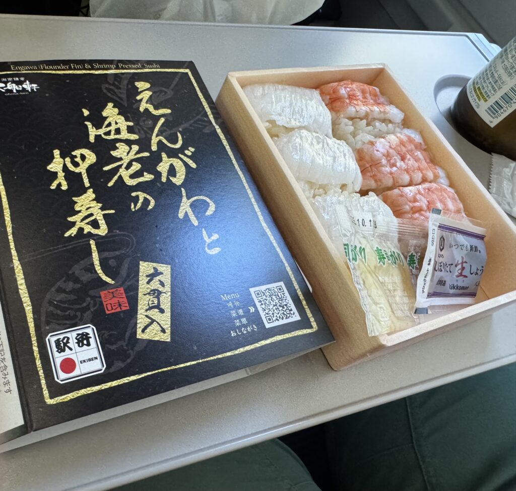 踊り子号の中で小田原駅で買った駅弁を食べました!