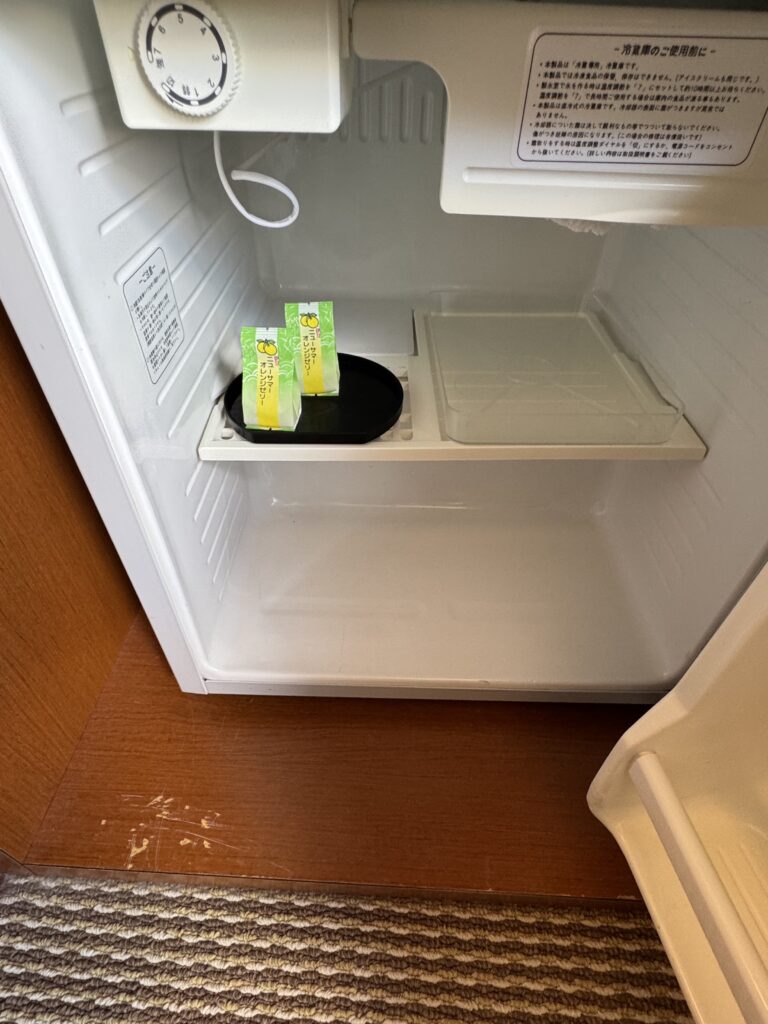 冷蔵庫には地元名物「ニューサマーオレンジゼリー」が用意されていて、ちょっとしたご当地感も嬉しいポイント🍊