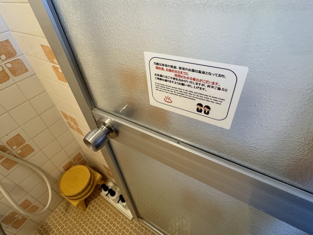 客室には洗い場付きのレトロな雰囲気の浴室がありますが、なんとこちらも温泉です。