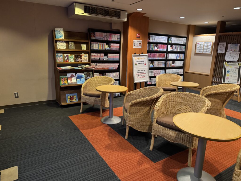 また一角には漫画コーナーも設置されており、貸出も可能。